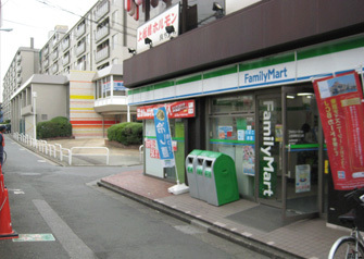 下ると正面にファミリーマートがありますので、右に曲がって下さい。