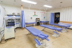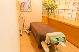 院内は広い空間で、安心して施術できます。美容鍼灸は半個室での施術になりますのでご安心ください。施術内容に合わせた器具もご用意しております。